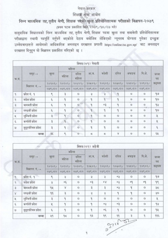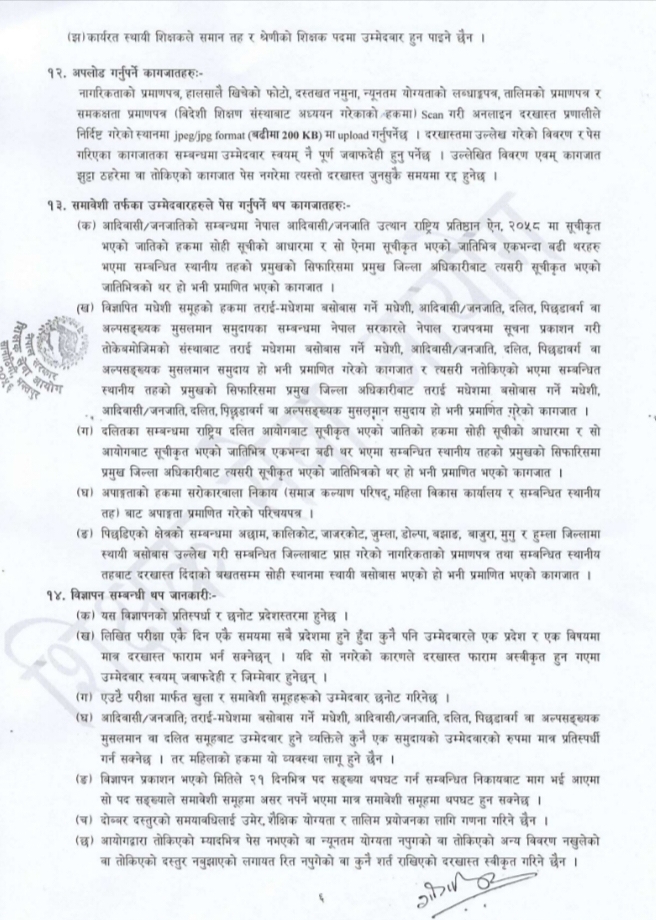 शिक्षक सेवा आयोगद्वारा सामुदायिक विद्यालयको नि.मा. तहको तृतीय श्रेणीको शिक्षक पदमा आवेदन माग
