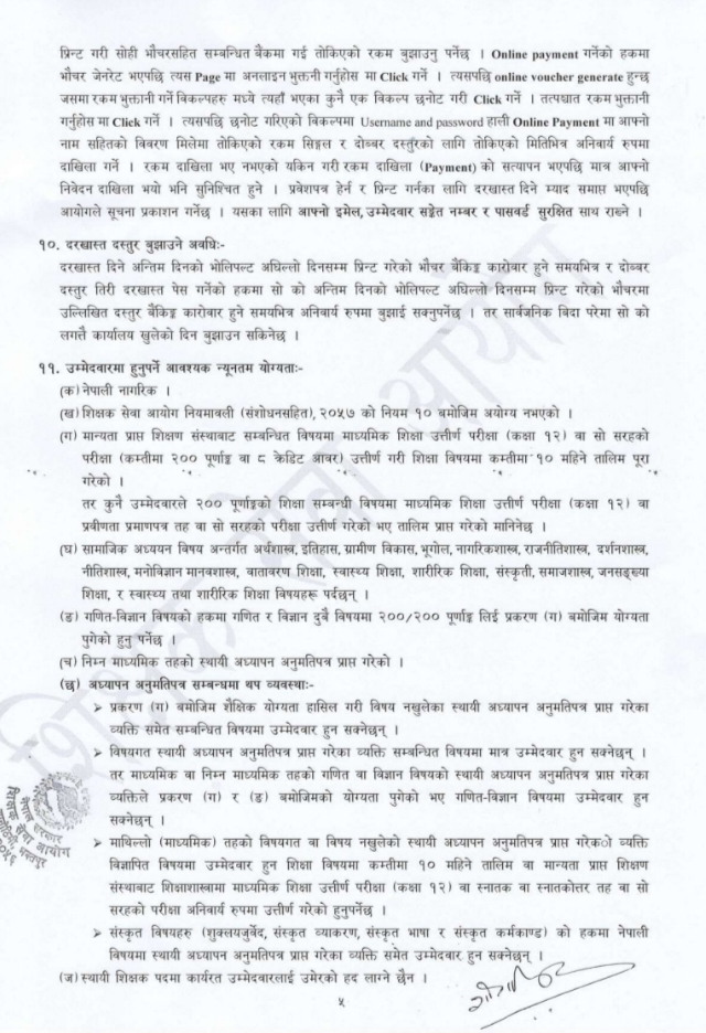 शिक्षा सेवा आयोगले सामुदायिक विद्यालयको निम्न माध्यमिक तहको तृतीय श्रेणीको रिक्त शिक्षक स्थायी पद पूर्तिको लागि आवेदन माग गरेको छ । सो पदका लागि १८ वर्ष पूरा भएका र ४० वर्ष ननाघेका इच्छुक नेपाली नागरिकले आउदो फाल्गुण २८ गतेसम्म रु.७०० दरले (प्रत्येक समावेशी समूहमा थप रु.५०० का दरले) शुल्क तिरेर आउदो चैत्र ५ गतेसम्म दोब्बर दस्तुर तिरेर आवेदन दिन सक्ने आज प्रकाशित सूचनामा उल्लेख छ ।