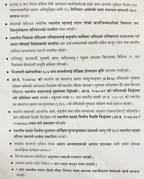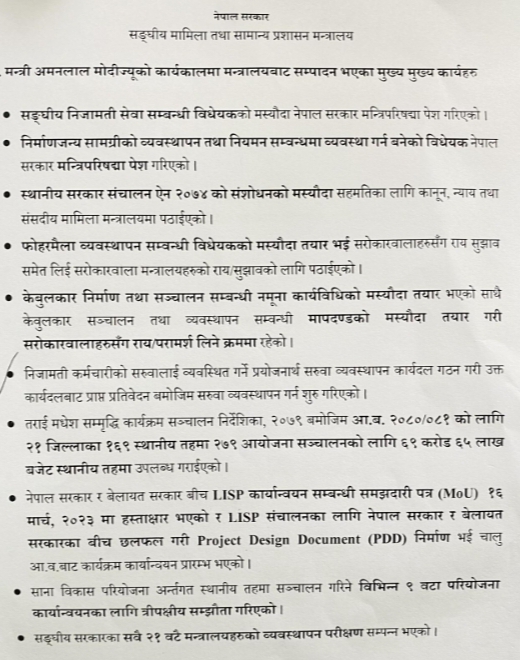 आफ्नो कार्यकालमा भएका कार्य सावर्जनिक गरि नि:बर्तमान मन्त्री अमनलाल मोदी मन्त्रालयबाट बिदा