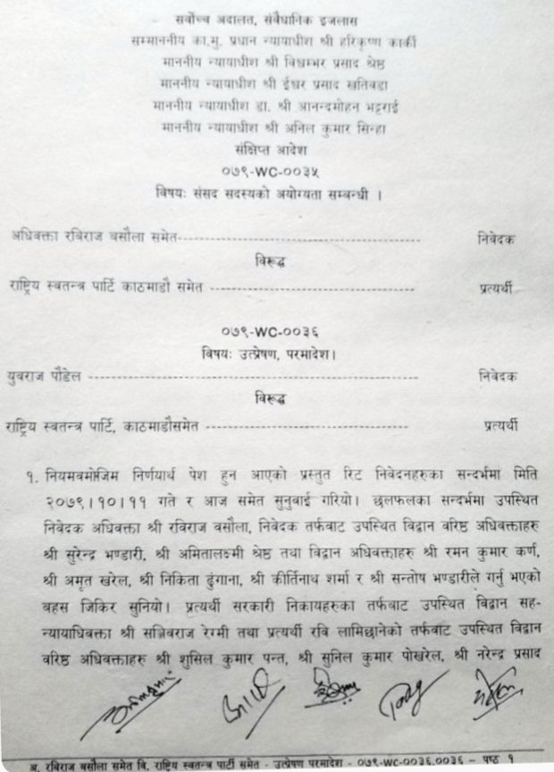 आज लामिछानेको नागरिकताको विसयमा सर्वोच्च आदालतका कायममुकायम प्रधानन्यायधीश हरिकृष्ण कार्की तथा न्यायधीशहरु डा. आनन्दमोहन भट्टराई , विश्वम्भरप्रसाद श्रेष्ठ , ईश्वरप्रसाद खतिवडा र अनिलकुमार सिन्हाको इजलासले उक्त फैसला गरेको थियो ।