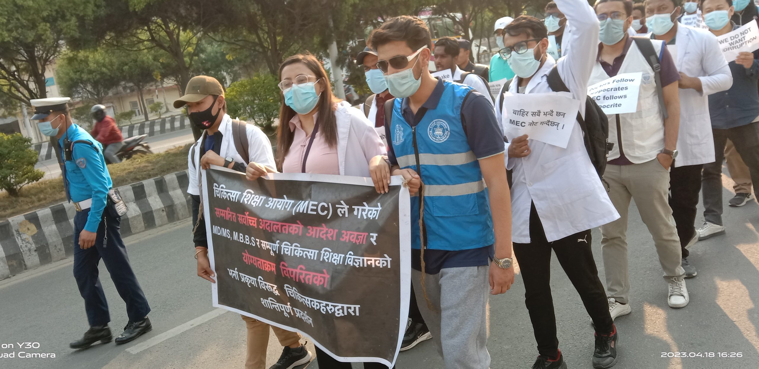 चिकित्सा शिक्षा आयोगले सर्वोच्च अदालतको आदेेशक‍ो अवज्ञा गरी एमडीएमस (MDMS) र एमबीबीएस (MBBS)को भर्ना गरेको भन्दै चिकित्सकहरुले मंगलबार काठमाडींमा विरोध प्रदर्शन गरेका छन् । मंगलबार काठमाडौंको माइतीघरमा जम्मा भएका चिकित्सकहरुले नयाँ बानेश्वरसम्म विर‍‍ोध -याली गरे ।