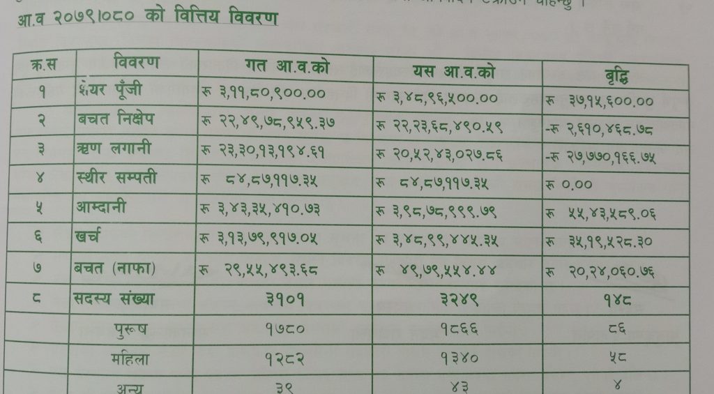साधारण सभाको अध्यक्षता गर्दै सोही संस्थाका अध्यक्ष राजथलाले ‘हुँदा खाने वर्गलाई हुने खाने बनाउने’ भन्ने दृढ संंकल्पले १५ वर्ष अगाडि स्थापना भएको जनता बचत तथा ऋण सहकारी संस्था लि.ले आफ्नो स्थापनाकालदेखि नै सदस्यहरुको बचतको सुरक्षालाई पहिलो प्राथमिकता दिदै सदस्यहरुको विश्वास आर्जन गरी संस्थाको दिगो विकास र सदस्यहरुलाई सरल र सहज रुपमा छिटो छरितो सेवा प्रदान गर्दै सदस्यको सन्तुष्टि संस्थाको मुख्य सफलता हो भन्ने मुल मान्यता अनुसार काम गर्दै आइरहेको बताउनुभयो । उहाँले विगत वर्षहरुमा कोभिड-१९ को प्रभाव र देशव्यापी बन्दाबन्दी हुँदा समेत पनि सदस्यहरुलाई वित्तीय सेवा दिन संस्था सफल भएको थियो भने यस अवधिमा संस्थाले सहकारी संस्थाहरुको माझमा एक विश्वासिलो , दिगो , भरपर्दो र पूर्ण व्यवसायिक कारोबार गरी आफ्ना सदस्यहरु माझमा र सम्बन्धित निकायहरुको बीचमा सफल सहकारी संंस्थाको रुपमा स्थापित हुन सफल भएको छ भन्दै खुशी व्यक्त गर्नुभयो । उहाँले यस संस्थाले स्मार्ट मोबाइल बैंकिङ (Smart Mobile Banking),क्युआर कोड (QR Code), एसएमएस सर्भिस (SMS Service) , ई-सवा (E-TELLER), ट्याब्लेट बैंकिङ (Tablet Banking) मार्फत वित्तीय सेवा प्रदान गर्न शुरु गरेकोले यी प्रविधिबाट संस्थाका सबै शेयर सदस्हरुलाई संस्थाबाट प्रविधिमैत्री सेवा र सुविधा मार्फत वित्तीय कारोबार गर्न अनुरोध गर्नुभयो ।