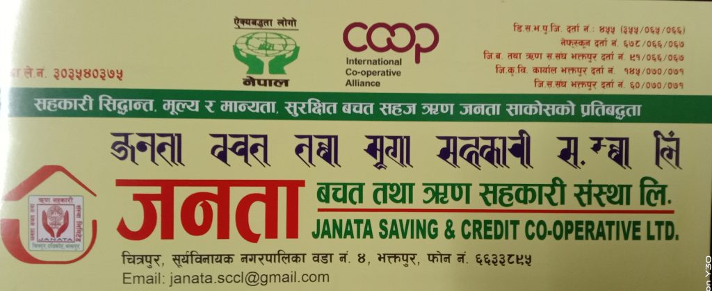नेफ्स्कूनका पूर्व अध्यक्ष तथा बरिष्ठ सहकारी अभियान्ता कैलाशभक्त प्रधानाङ्गले नेफ्स्कून या अन्य कुनै सहकारी संघको सञ्चालक चयन भएको व्यक्तिले त्यस अघि आफू आवद्ध रहदै आएको सहकारी संघ/संस्थाको सञ्चालक समितिबाट राजीनामा दिनु पर्ने भनी सहकारी विभागको निर्देशन व्यबहाारिक छैन र सहकारी विभागको नियमन कार्यक्षेत्र बाहिरका सहकारी संघ/संस्थाका सञ्चालक समिति र लेखा सुपरीवेक्षण समितिका पदाधिकारी र सदस्यहरुले आफ्नो सम्पति विवरण सहकारी विभागमा बुझाउनु पर्दैन भन्नुभयो । शनिबार यचु पाटी भेन्यु ,शंखधरचोकमा सम्पन्न जनता बचत तथा ऋण सहकारी संस्था लि.,चित्रपुर, भक्तपुरको १५औँ वार्षिक सााधारण सभाको उद्घाटन गर्दै उहाँले रक्तदान कार्यक्रम, जेष्ठ नागरिक दिवसमा जेष्ठ नागरिकलाई सम्मान गर्ने लगायतका रचनात्मक क्रियाकलाप गर्दै आएको जनता साकोस निरन्तर प्रगतिपथमा अगाडि बढेको देख्दा खुशी लाागेको बताउनुभयो । साधारण सभामा शुभकामना मन्तव्य व्यक्त गर्दै भक्तपुर जिल्ला बचत तथा ऋण सहकारी संंघ लि.का सञ्चालक पञ्चकृष्ण श्रेष्ठले एउटा व्यक्तिले ५/७ वटा बैंक तथा अन्य वित्तीय संस्थामा कारोबार गर्न पाउने तर सहकारीमा भने भने एक व्यक्ति-एक सहकारीको नीति लागू गर्नु सहकारी सिध्याउने खेल हो’, भन्नुभयो । बजारमा व्यवसायिक ढंगले चलेका सहकारी संस्थामा बढी व्याजको लोभमा परेर कारोबार गर्नुको साटो जनता साकोस जस्ता समुदायमा आधारित रहेर राम्रोसँग चलेका सहकारी संंस्थामा आफ्नो सबै कारोबार गर्न सदस्यहरुलाई आग्रह गर्दै उहाँले भक्तपुर जिल्ला बचत तथा ऋण सहकारी संघ लि.ले आफ्ना सदस्य संस्थारुलाई डुब्नबाट जोगाउने तथा सदस्य संस्थाको जमानीमा उक्त संस्थालाई विना धितो रु.६० लाखसम्म र सदस्य संस्थाको तरलता व्यवस्थापनको लागि धितोमा आवश्यकता अनुसार जति पनि ऋण लगानी गर्न सक्ने बताउनुभयो । साधारण सभामा शुभकामना मन्तव्य व्यक्त गर्दै राष्ट्रिय सहकारी बैंक लि.थिमि शाखाकी प्रमुख सीता भट्टराई निरौलाले जनता साकोसका सबै सूूूचकाङ्कक राम्रो देखिएको र आवश्यक परेमा यस संस्थालाई राष्ट्रिाय सहकारी बैंकले सहयोग गर्ने बताउनुभयो । सो संस्थाका अध्यक्ष राजेशकुमार राजथलाले अध्यक्षता र उपाध्यक्ष महेन्द्र राजथलाले स्वागत मन्तव्य व्यक्त गर्नु भएको साधारण सभामा उक्त संस्थाका कानुनी सल्लाहकार अनिल श्रेष्ठले शुभकामना मन्तव्य व्यक्त गर्दै जनता साकोसको वित्तीय अवस्था राम्रो रहेको भन्दै यो संंस्थाको थप प्रगतिको कामना गर्नुभयो ।