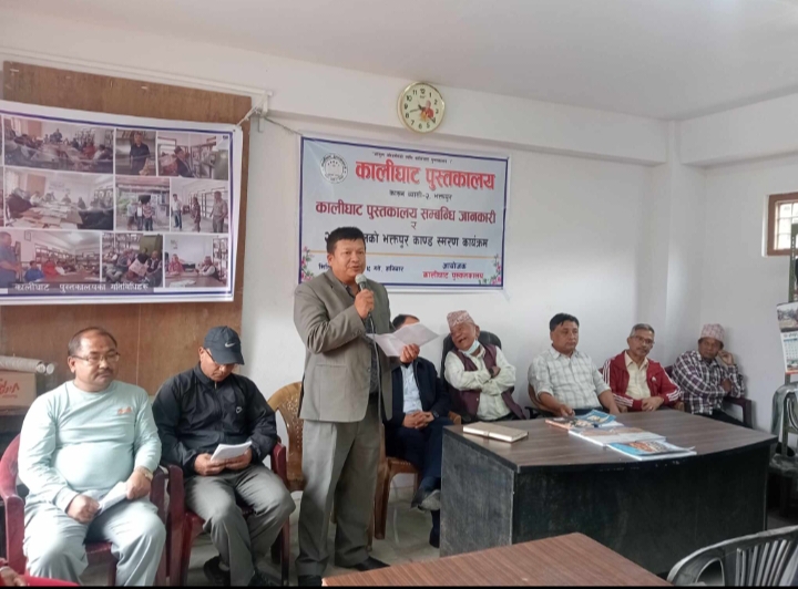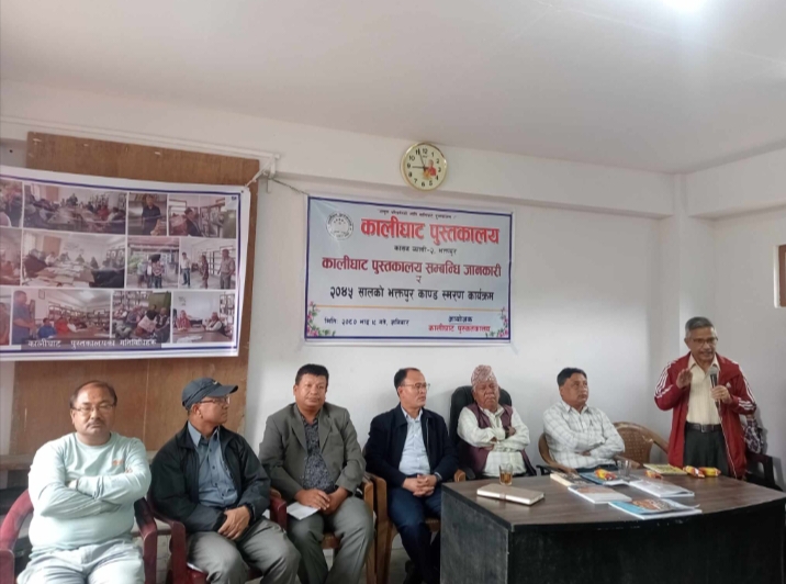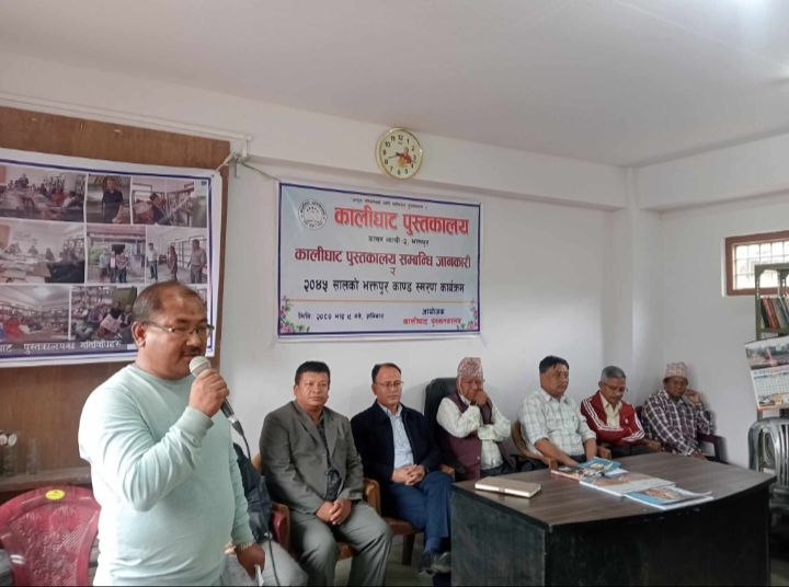 कालीघाट पुस्तकाल क्रियाकलाप र स्तरीकरणबारे स्थानीयलाई जानकारी दिन र २०४५ सालमा रचेको भक्तपुर काण्ड भत्सर्ना गर्न आयोजित कार्यक्रममा पुस्तकालयका सचिव लक्ष्मीनारायण सुवाल,कोषाध्यक्ष पुण्यराम बासुकला र सदस्य रत्नलाल कैटीले पुस्तकालयको महत्व ,विकास र विस्तार बारे चर्चा गर्दै असफल २०४५ सालको भक्तपुर काण्डको भत्सर्ना गर्नु भएको थियो ।