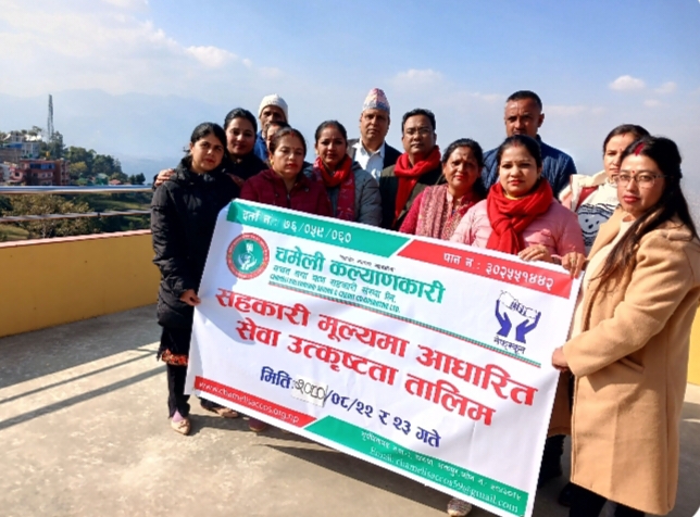 भक्तपुरको सूर्यविनायक नगरपालिका-१, बिरुवामा आफ्नै भवनमा केन्द्रीय कार्यालय तथा सोही नगरपालिका-७, गुण्डुमा सेवाकेन्द्र सञ्चालन गरी आफ्ना शेयर सदस्यहरुलाई वित्तीय सेवा प्रवाह गरिरहेको चमेली कल्याणकारी बचत तथा ऋण सहकारी संस्था लि.का ब्यबस्थापक सुदर्शन चौलागाईँले बजारमा चलेका सहकारी विरोधी हल्लाले मानिसहरुमा सहकारीलाई हेर्ने नजर नकारात्मक बनेपनि त्यो हल्लाले हाम्रो यस संस्थामा अशर नगरेको बताउनुभएको छ । अलगपथसँग कुरा गर्दै उहाँले ‘यो १ वर्षमा अघिल्लो वर्ष भन्दा ६ करोड रुपैया भन्दा बढी थप वित्तीय कारोबार भएको हाम्रो यो संस्थामा तरलाता पर्याप्त मात्रामा छ भने खराब ऋण छैन’, भन्नुभयो । सूर्यविनायक नगरपालिकाभर कार्यक्षेत्र रहेको यस संस्थामा शेयर सदस्य संंख्या ४,९६६, शेयर पूँजी रु.६,२१,१८,००० , निक्षेप संंकलन रु.६५,४३,८८,३२४, ऋण लगानी रु.६२,५६,०८,७०८ , जगेडा कोषमा रु.७,०८,८३,७७५ र कुल कारोबार रु.८६,६३,२८,०५७ रहेको उहाँको भनाइ छ ।
