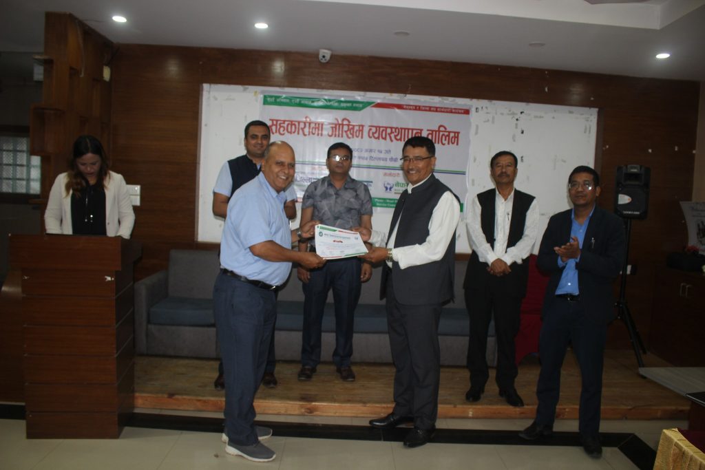 तालिममा नेपाल बचत तथा ऋण केन्द्रीय सहकारी संघ लि.का तालिम अधिकृत उमेश कोइरालाले जोखिमको परिचय, जोखिमको प्रकार र सहकारीमा जोखिमबाट बच्ने उपाय विषयहरुमा प्रयोगात्मक ढंगबाट सहजिकरण गर्नुभएको थियो ।