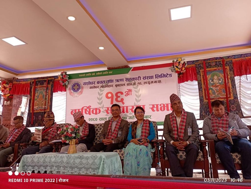 ललितपुर महागरपालिका-१६,बुबहालमा रहेको यशोधर बचत तथा ऋण सहकारी संंस्था लि.मा शेयर पूँजी रु.७८,३२,७००, बचत संकलन रु.१०,०८,२४,३९९.६५ , ऋण लगानी रु.९,१३,७५,३३६.७० र कुल कारबार रु.११,५८,४८,८५० रहेको बताइएको छ । सो संस्थाका सचिव सुनिलरत्न बज्राचार्यले त्यस संस्थाले आफ्ना शेयर सदस्यहरुलाई आर्थिक वर्ष २०७९/०८० मा आर्जन गरेको मुनाफाबाट ७.४० प्रतिशत लाभांश र कारोबारको आधारमा संरक्षित पूँजी फिर्ता कोषको रकम नियमानुसार वितरण गरिसकेको अलगपथलाई बताउनुभयो ।