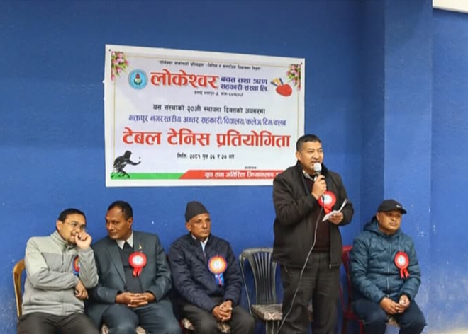लोकेश्वर बचत तथा ऋण सहकारी संस्था लि.को २०औं स्थापना दिवसको अवसरमा सो संस्थाको युवा तथा अतिरिक्त क्रियाकलाप उप-समितिको आयोजनामा “भक्तपुर नगरस्तरीय टेबल टेनिस प्रतियोगिता-२०८१” आजबाट शुरु भएको छ । भोलिसम्म सञ्चालन हुने प्रतियोगिताको उद्घाटन आज भक्तपुर नगर खेलकुद समितिका पूर्व संयोजक