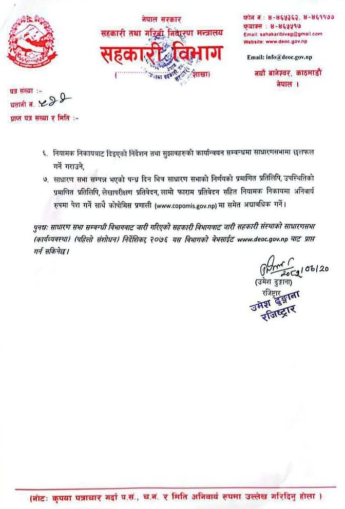 सहकारी विभागद्वारा सहकारी संघसंस्थालाई ७ बुँदे निर्देशन जारी