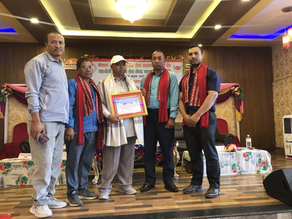 भक्तपुरको सूूर्यविनायक नगरपालिका-४, चित्रपुरमा सञ्चालन भइरहेको जनता बचत तथा ऋण सहकारी संस्था लि.का अध्यक्ष राजेशकुमार राजथला सुरेन्द्रप्रताप शाह स्मृति पुरस्कारबाट सम्मानित हुनुभएको छ ।