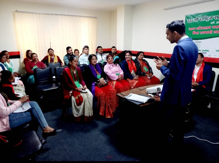 तालिमको अध्यक्षता गर्दै उपासना महिला बचत तथा ऋण सहकारी संस्था लि.की अध्यक्ष महर्जनले