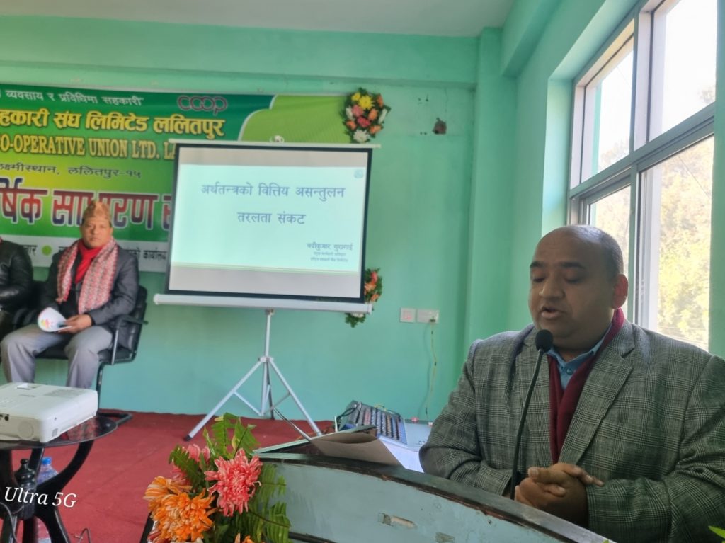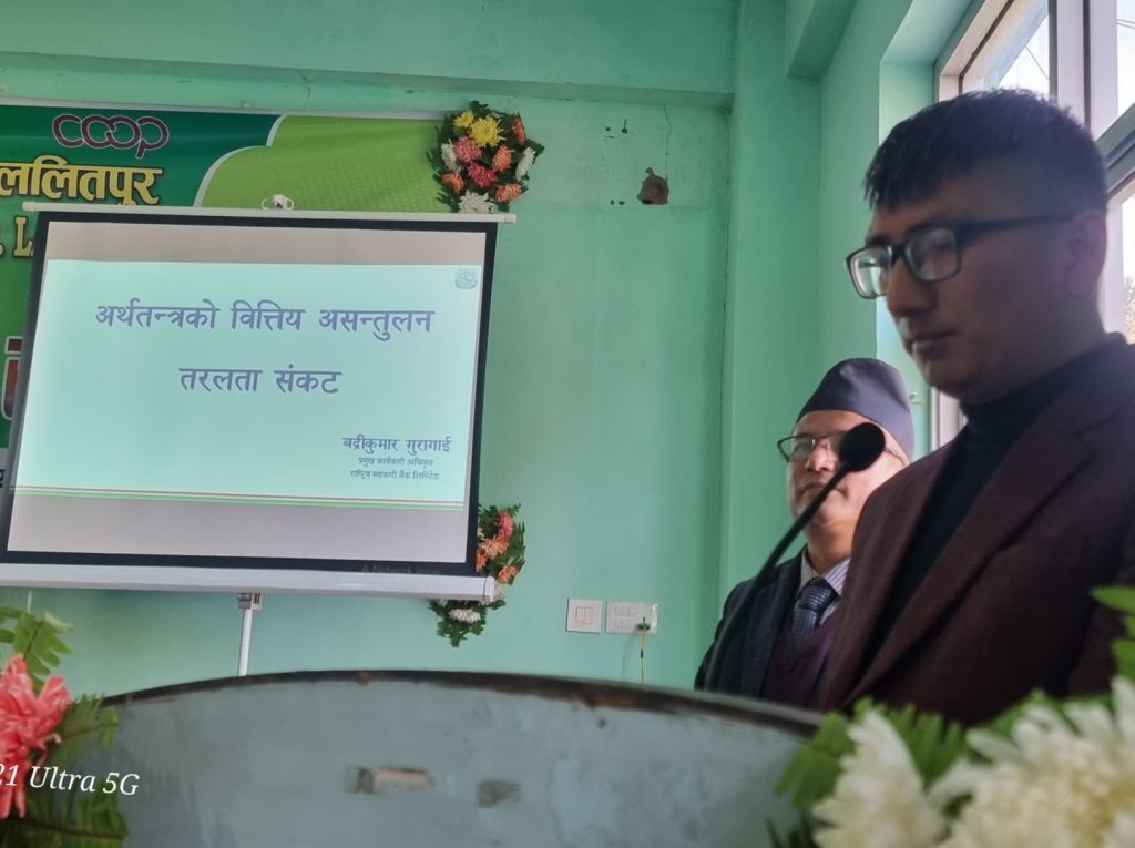 साधारण सभामा शुभकामना मन्तव्य व्यक्त गर्दै राष्ट्रिय सहकारी बैंक लि.का प्रमुख कार्यकारी अधिकृत बद्रीकुमार गुरागाईँले सहकारीमा तरलताको महत्वको बारेमा चर्चा गर्दै सहकारी संघ/संस्थामा तरलता व्यवस्थापनमा ध्यान दिनु पर्ने खाँचो औंल्याउनुभयो ।