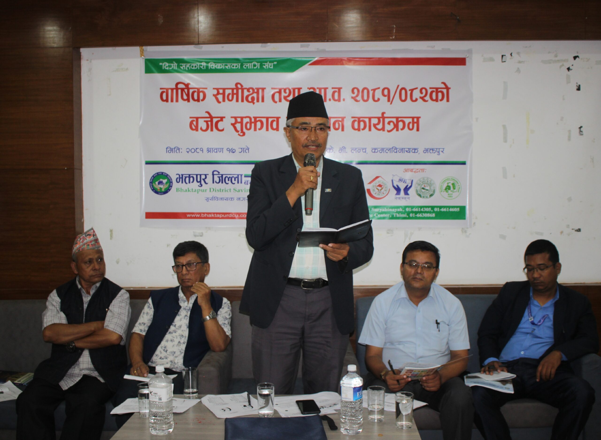 भक्तपुर जिल्ला बचत तथा ऋण सहकारी संघ लि. को वार्षिक समीक्षा तथा आ.ब. २०८१/०८२ को बजेट सुझाव संकलन कार्यक्रम २०८१ श्रावण १७ गते बिहीबार के.भी लञ्च, कमलविनायकमा सम्पन्न भयो । उक्त कार्यक्रमलाई सम्बोधन गर्दै सोही संघका अध्यक्ष कृष्णगोविन्द लाखाजुले हाम्रो यस संघले अनुगमनलाई प्राथमिकता दिने र समय अनुकुल सामाजिक उत्तरदायित्वमा ध्यान दिएर सदस्य संस्थालाई आर्थिक पक्षमा सुदृढ बनाउने विचार व्यक्त गर्नूभयो । उहाँले सहकारी संस्थाहरु बलियो भए भने सहकारी संघ समेत बलियो हुने भएकोले सहकारी संस्थाहरुको चौतर्फी विकासमा हाम्रो यो संघ निरन्तर प्रयासरत रहेको बताउनुभयो । त्यस संघले आ.ब.२०८०/०८१ मा तय गरेको कार्यक्रम तथा बजेटको समीक्षा गर्दै उहाँले हाम्रो यो संघले आ.व.२०८०/०८१ तय गरेको कार्यक्रम सफलतापूर्वक सम्पन्न भएको भन्दै प्रशन्नता व्यक्त गर्नुभयो ।