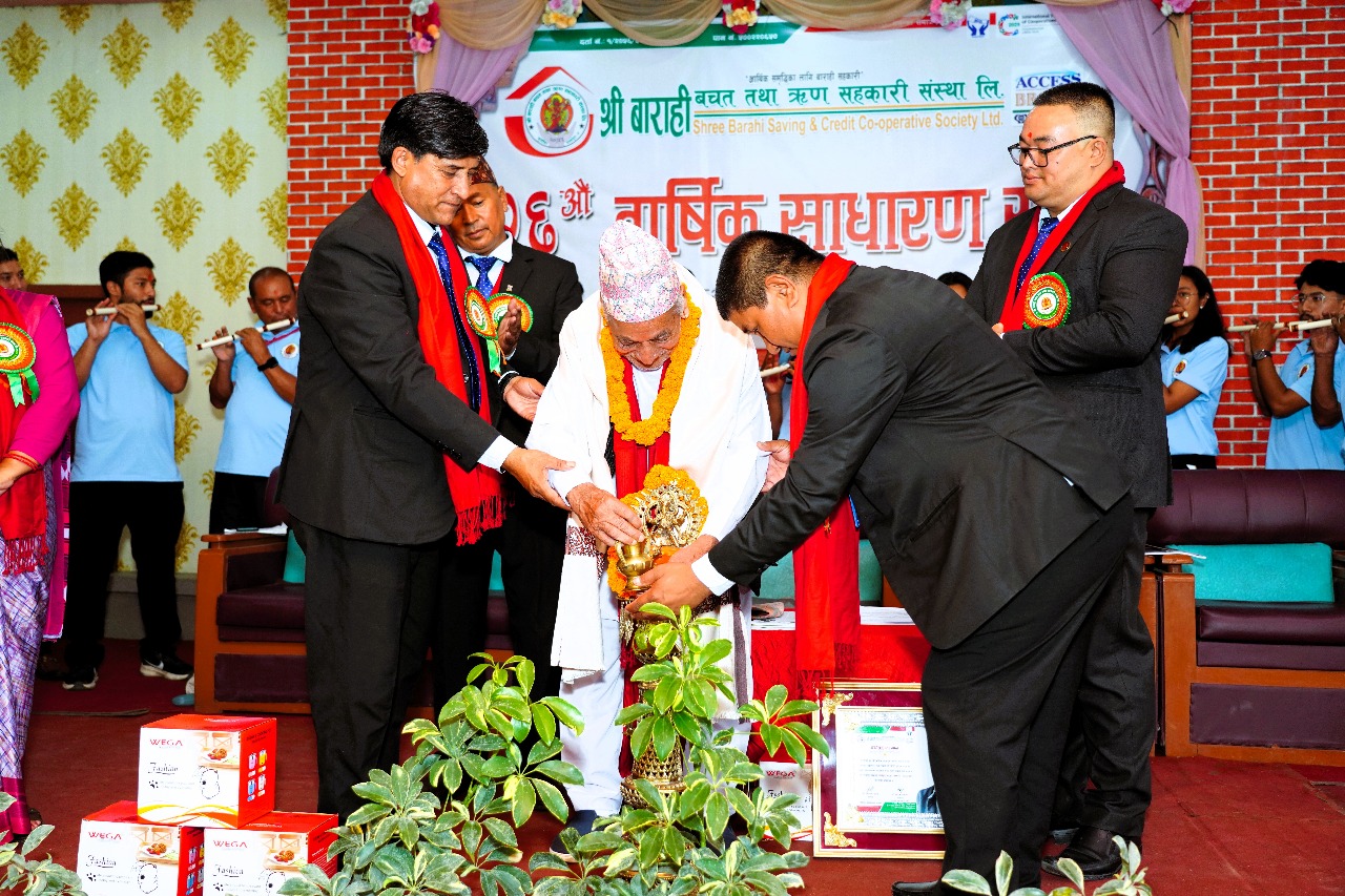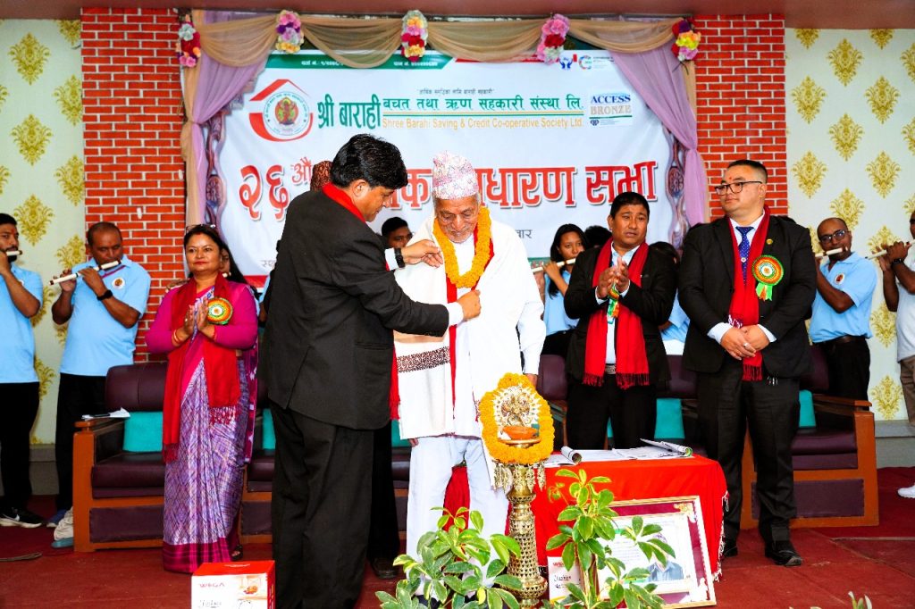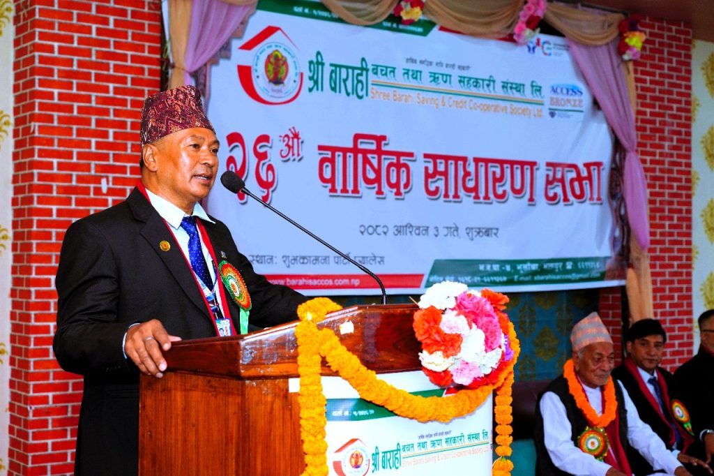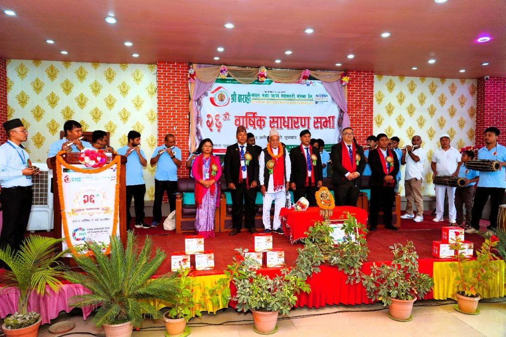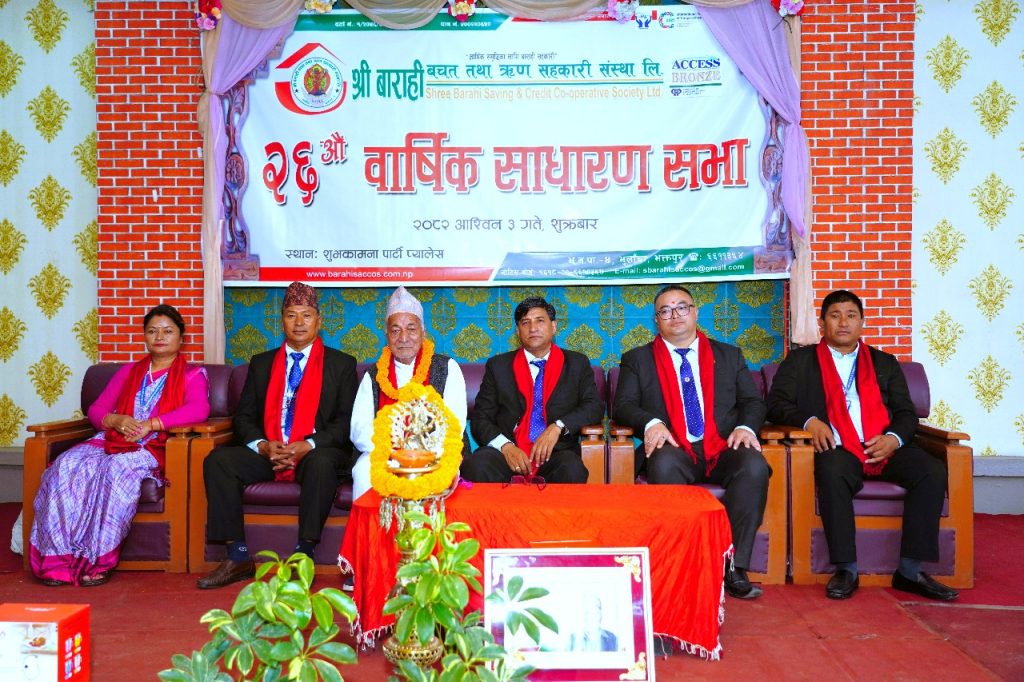 भक्तपुर नगरपालिका-४, भुलाँचामा आफ्नै भवनबाट सञ्चालन भइरहेको श्री बाराही बचत तथा ऋण सहकारी संस्था लि.को २६औं वार्षिक साधारण सभा २०८२ आश्विन ३ गते शुभकामना पार्टी प्यालेस, कालाँचा–४, भक्तपुरमा त्यसै संस्थाका सदस्य नं. ९३५ का नारां कृष्ण त्यातको प्रमुख आतिथ्यता र सोही संस्थाका अध्यक्ष राधेश्याम सुवालको अध्यक्षतामा सम्पन्न भयो ।